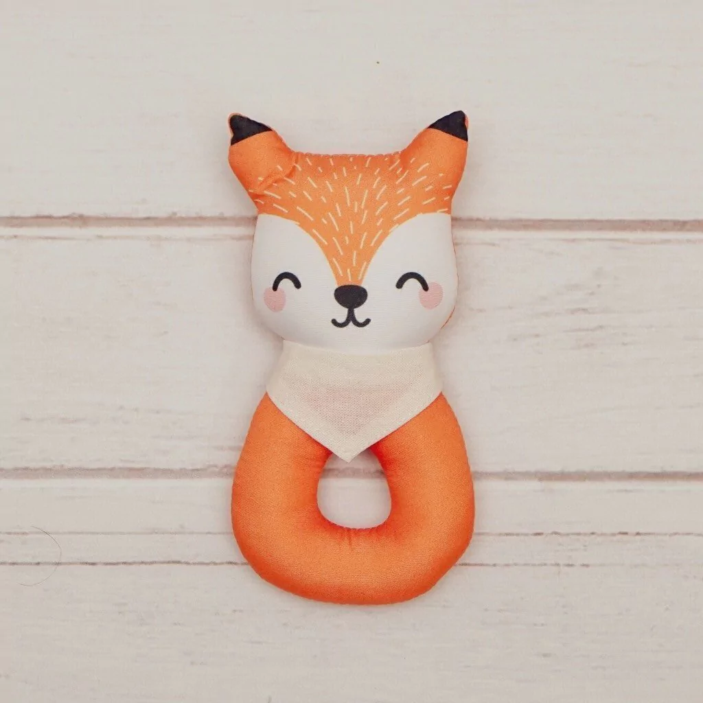 Sonajero Zorrito naranja sublimado, con bandana de Tusor crudo en el cuello